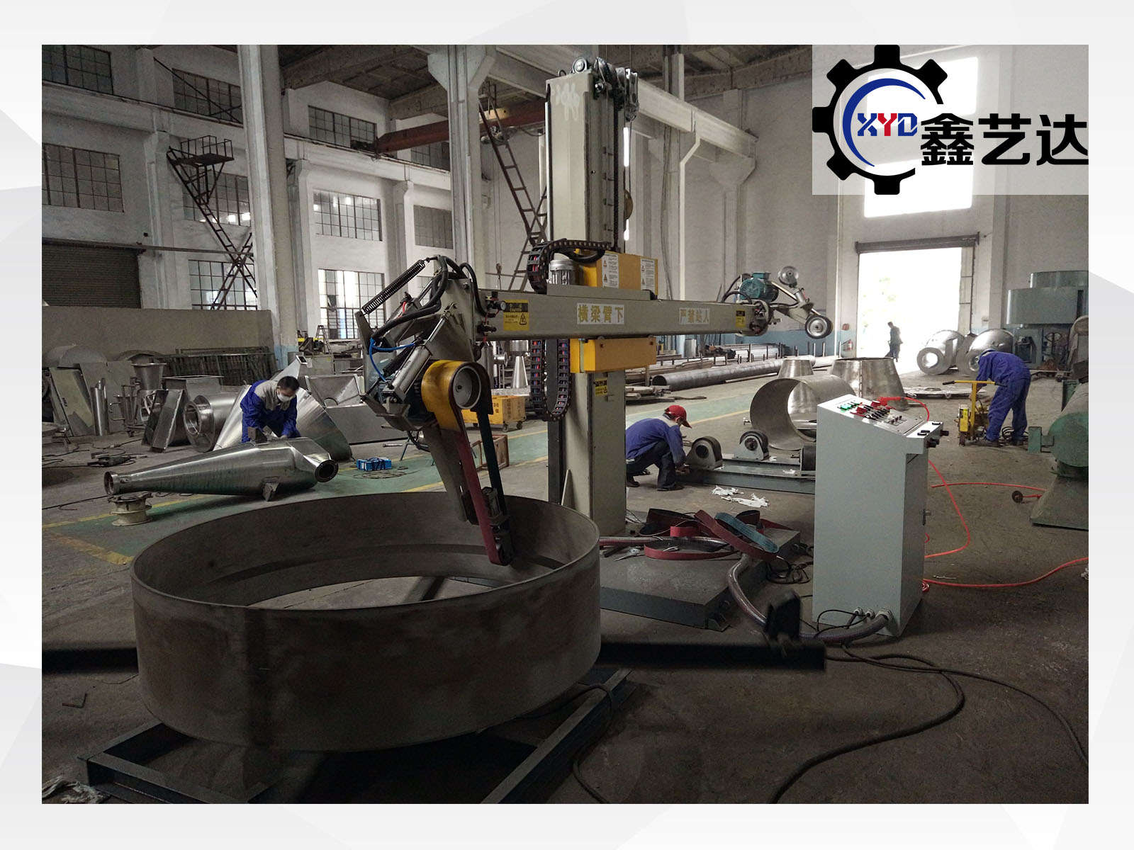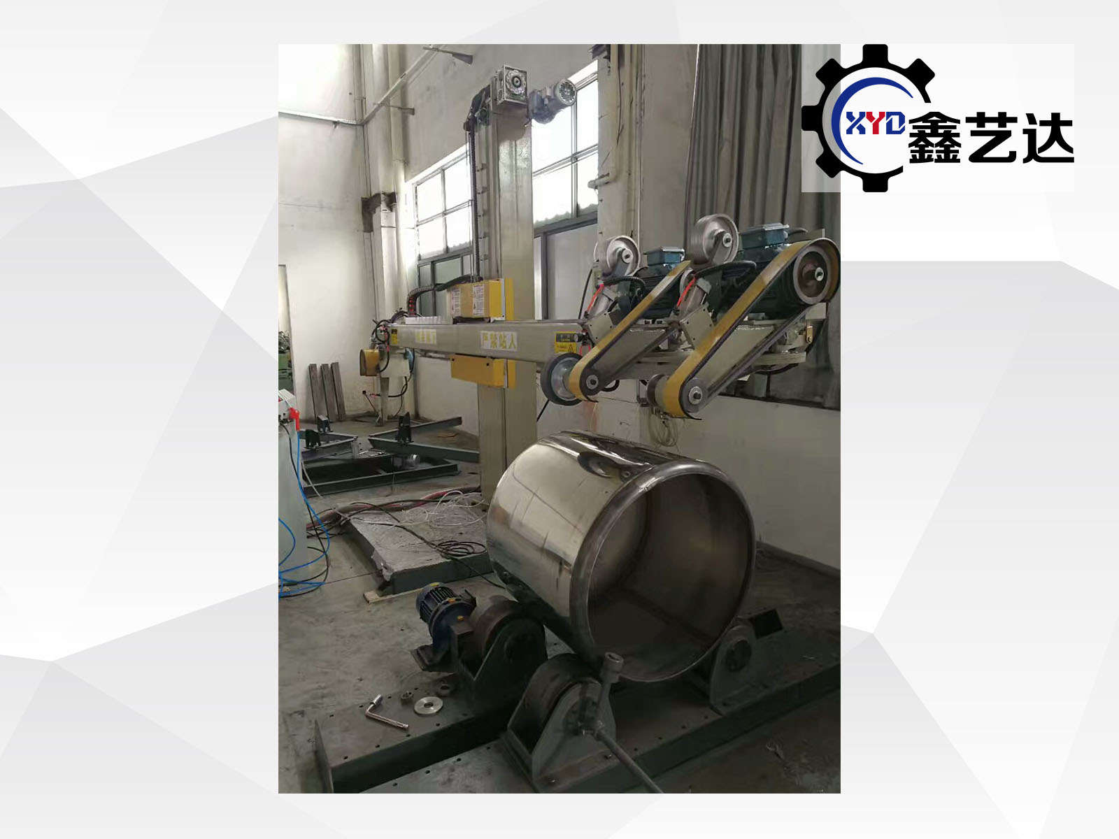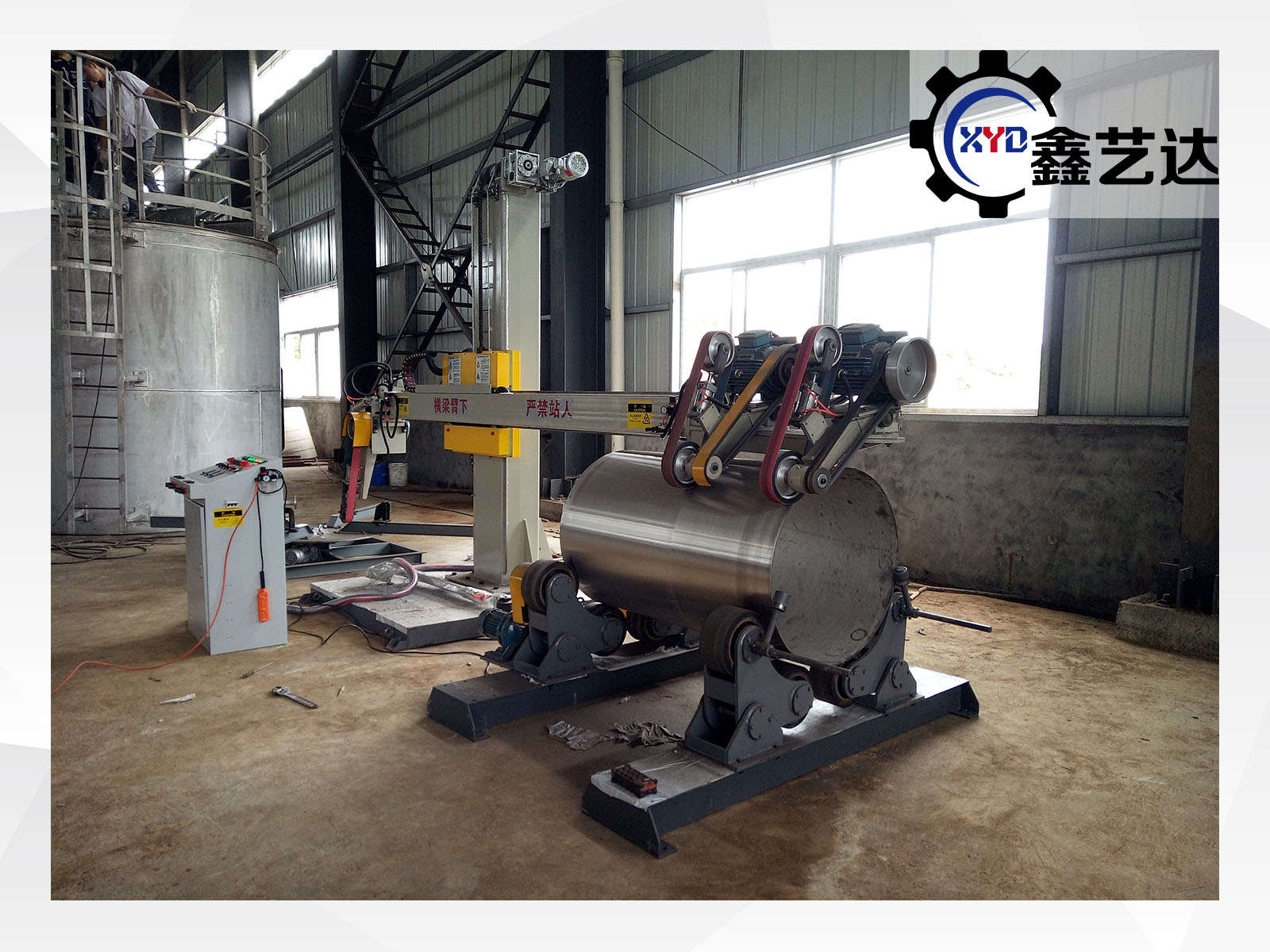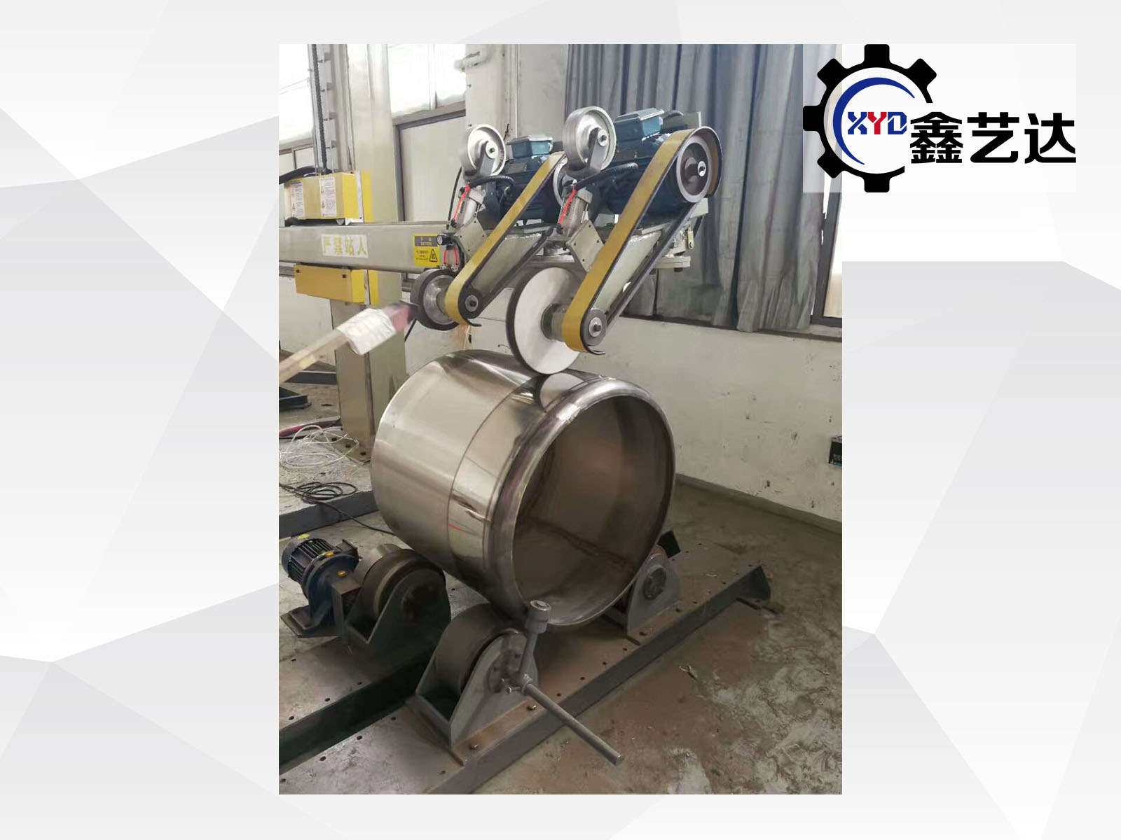 設(shè)備由橫梁、立柱、底座、罐體磨頭、封頭磨頭、罐體滾臺(tái)、封頭滾臺(tái)、控制柜等組成。適合罐體φ800mm-3000mm、封頭φ500mm-3000mm內(nèi)外拋光,選配封頭轉(zhuǎn)臺(tái)載重范圍:1-20噸。