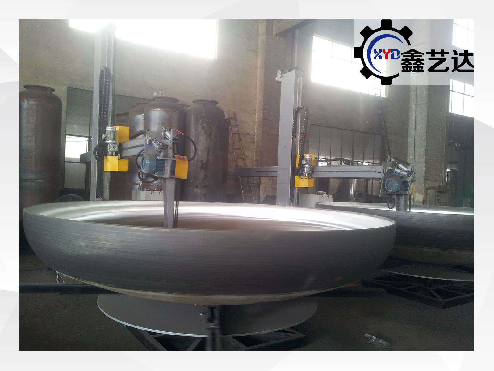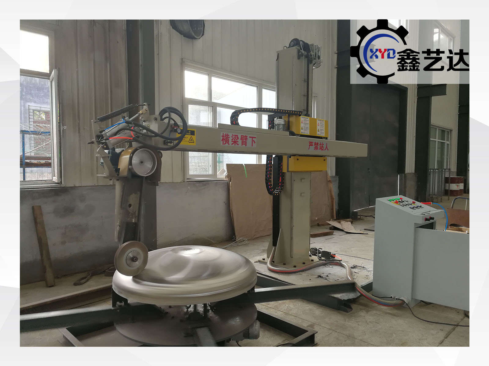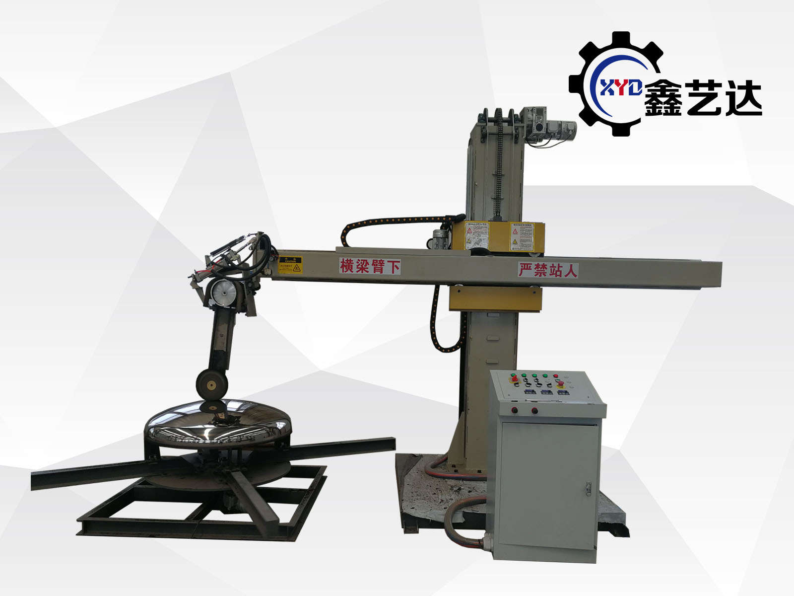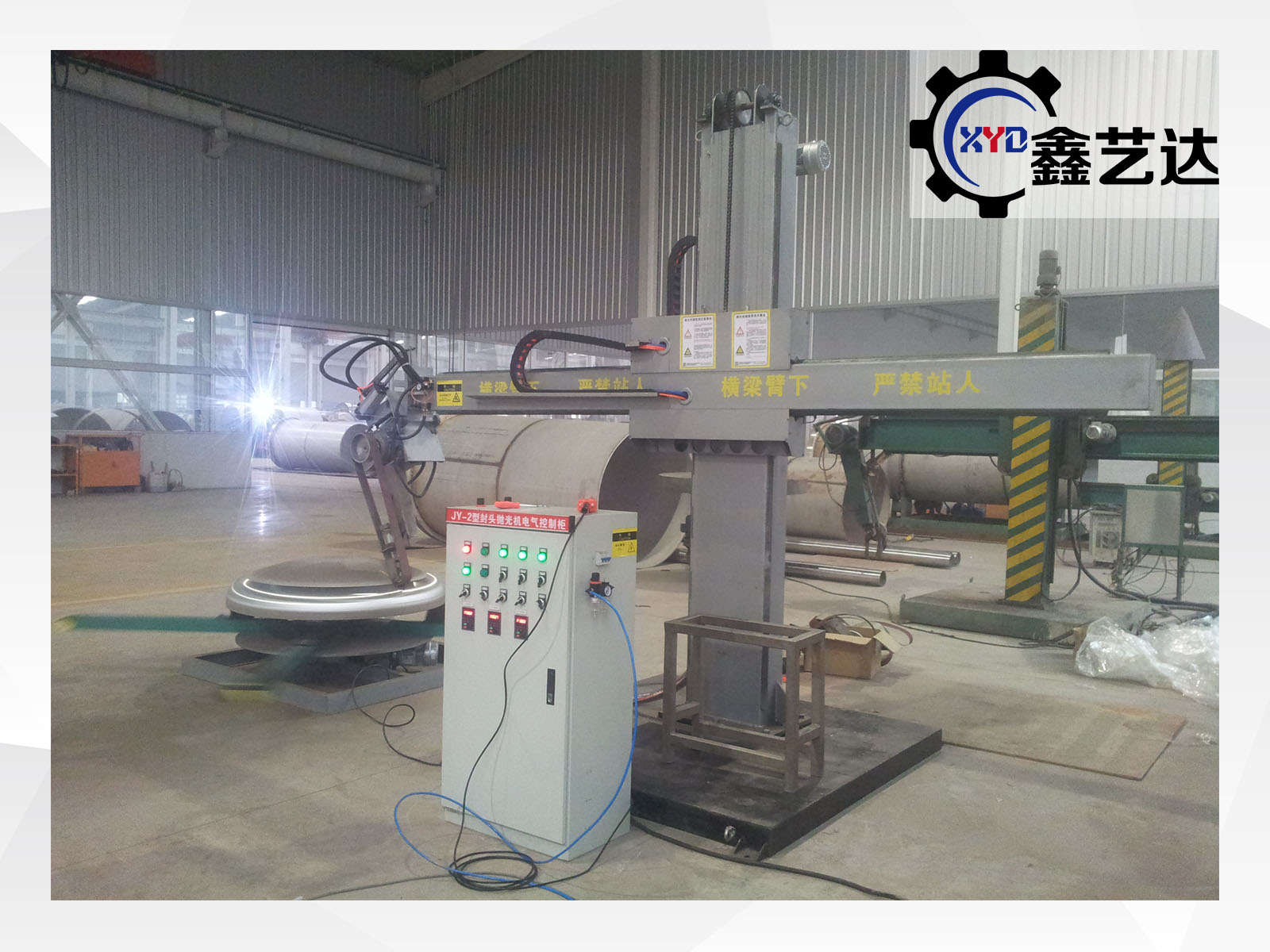 標配載重1噸的封頭轉臺,橫梁上下、左右、工件旋轉,變頻調速,一共三臺變頻器,橫梁有效行程2500mm