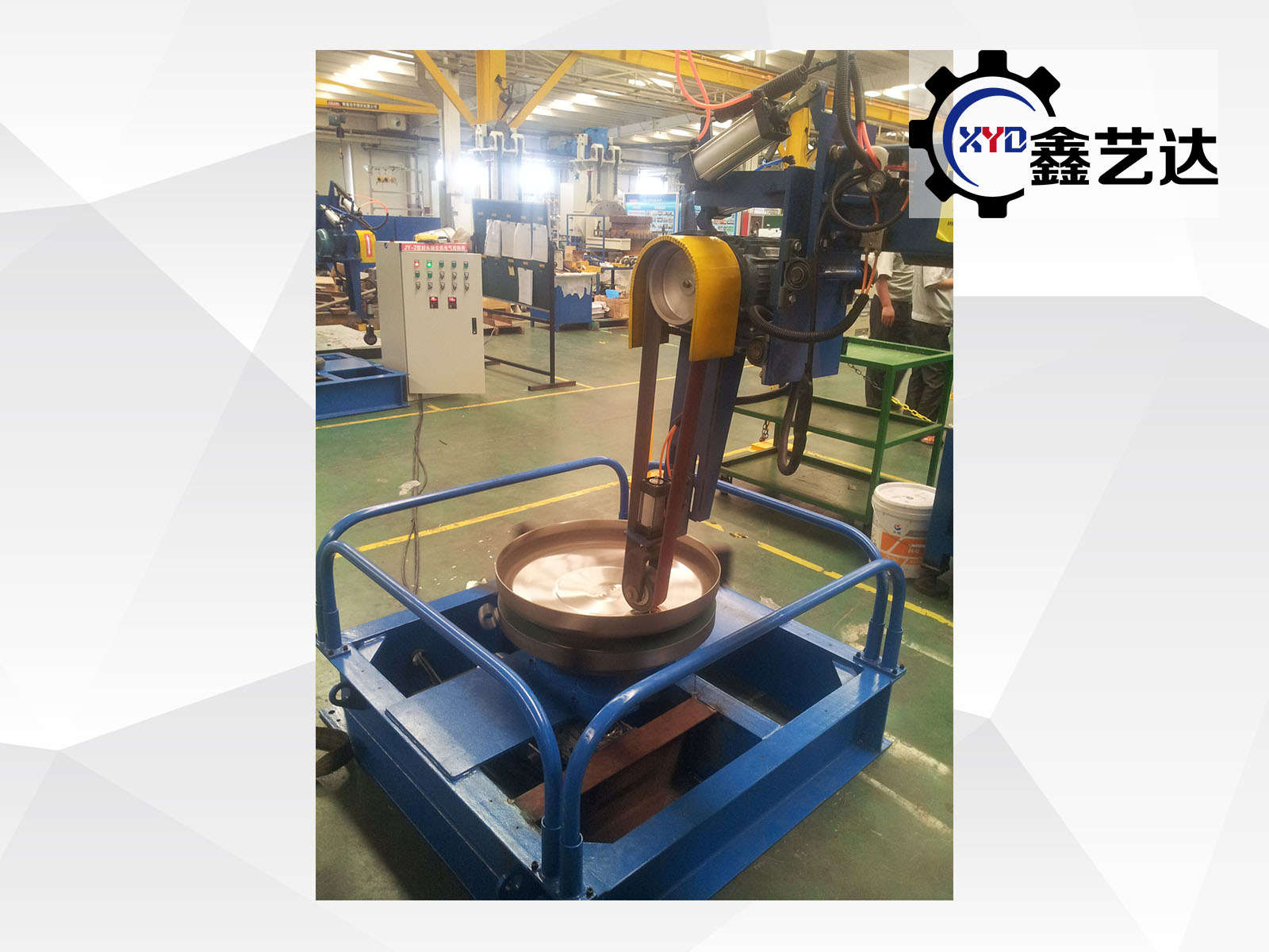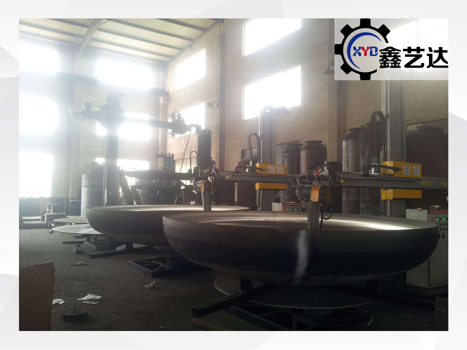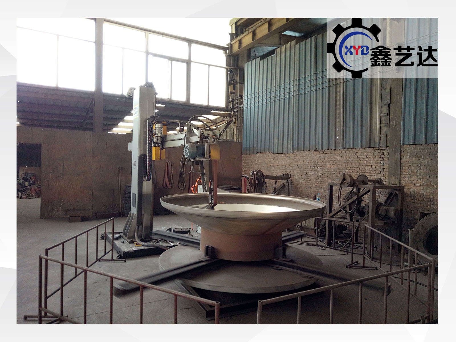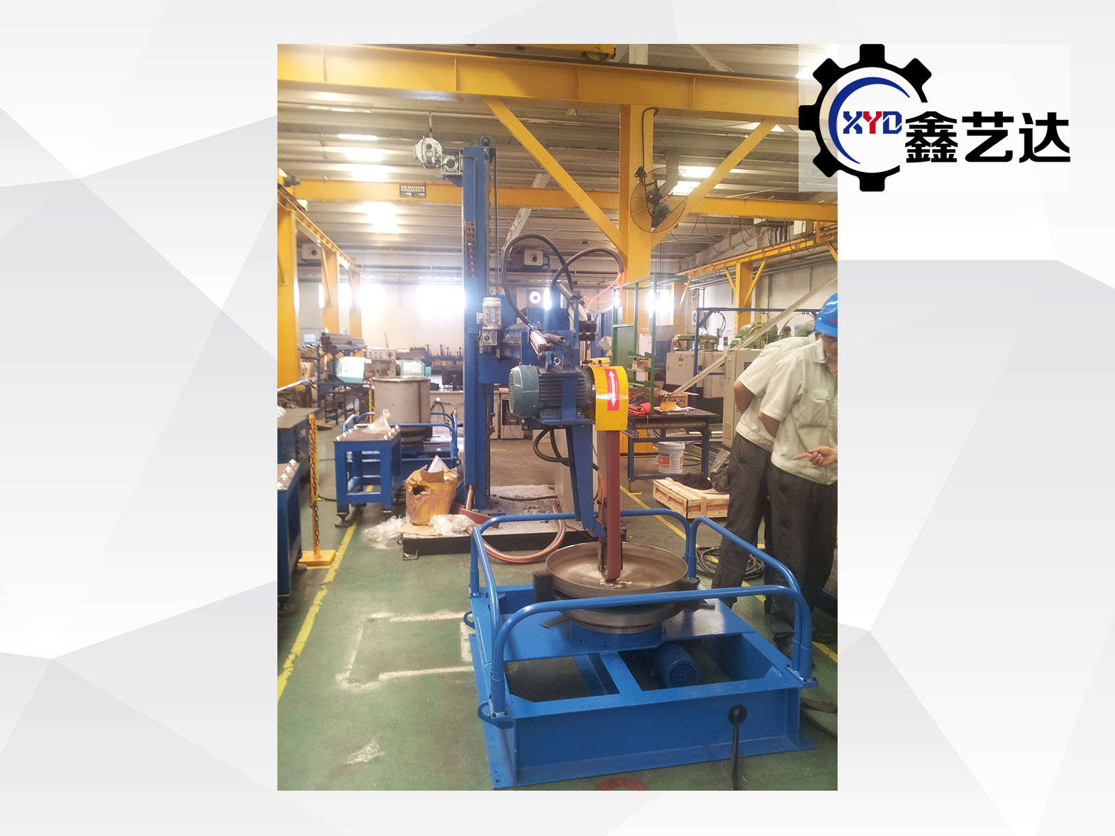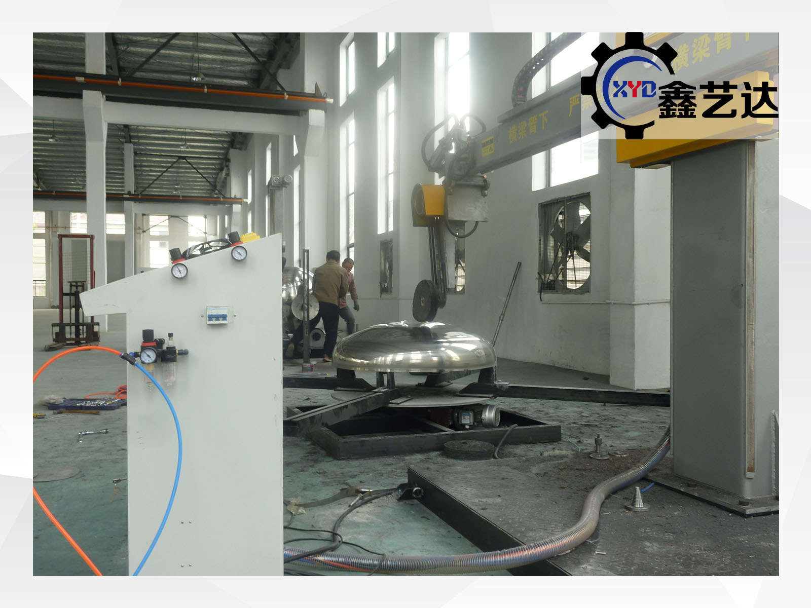 標配載重1噸的封頭轉臺,橫梁上下、左右、工件旋轉,變頻調速,一共三臺變頻器,橫梁有效行程2500mm