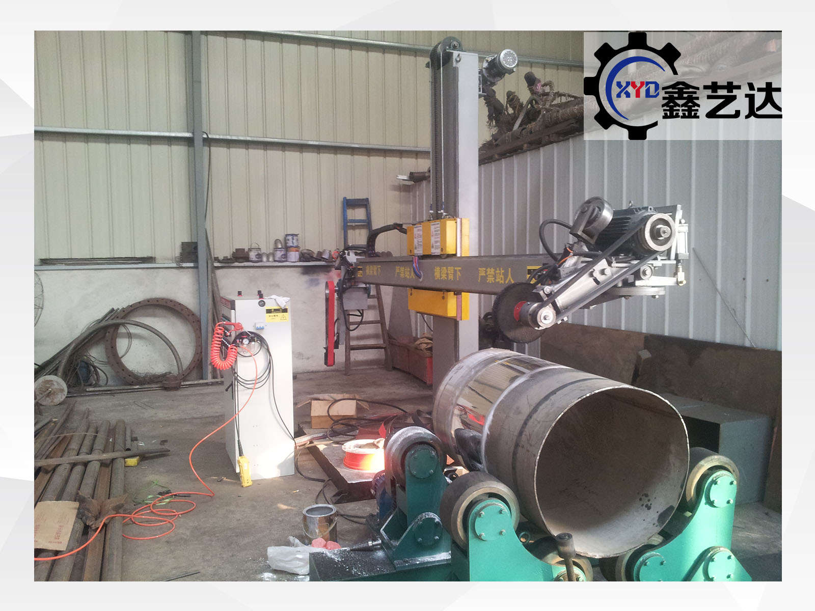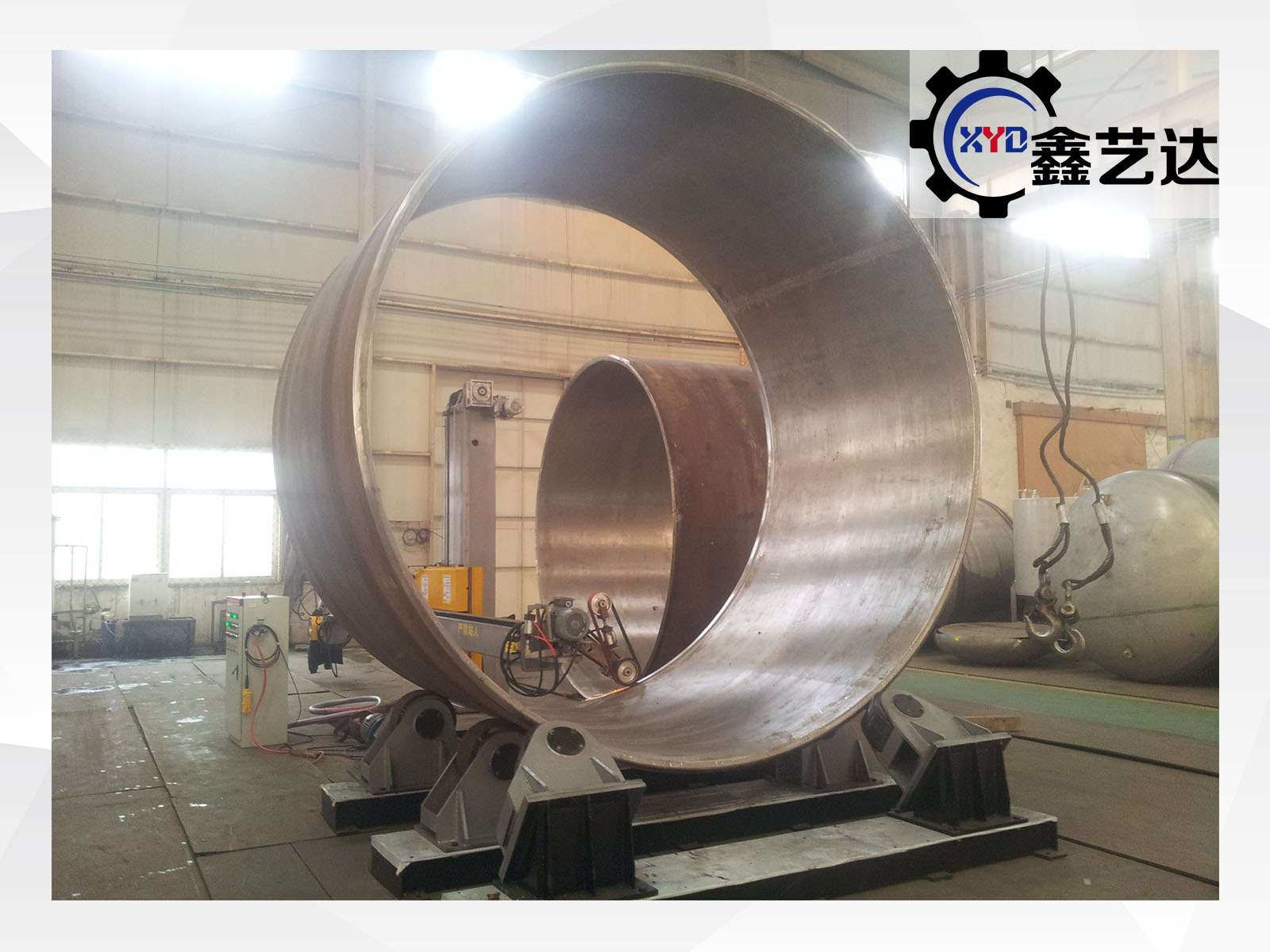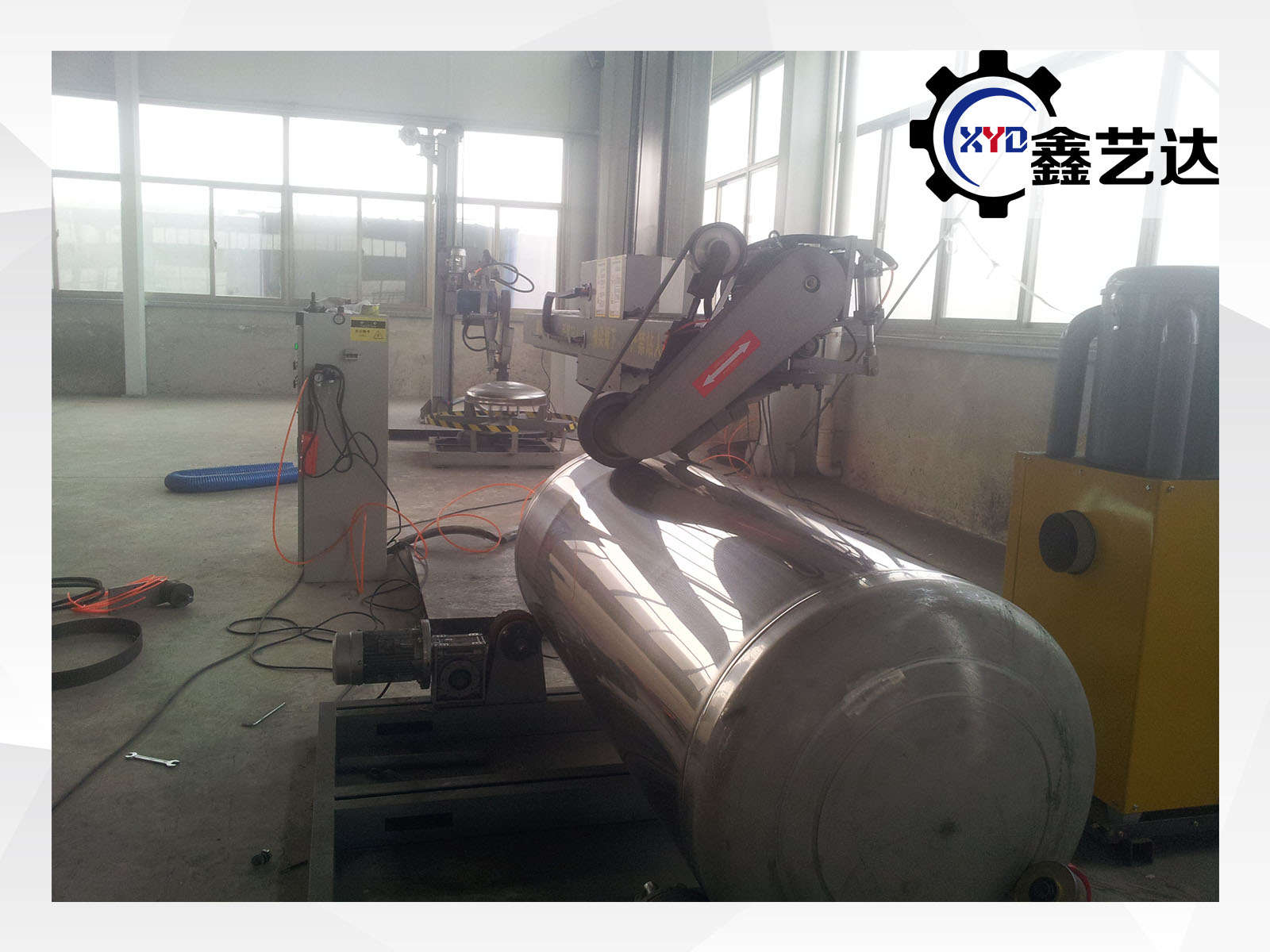 標配載重2噸的罐體滾臺,橫梁左右、工件旋轉,變頻調速,一共兩臺變頻器,橫梁有效行程2500mm