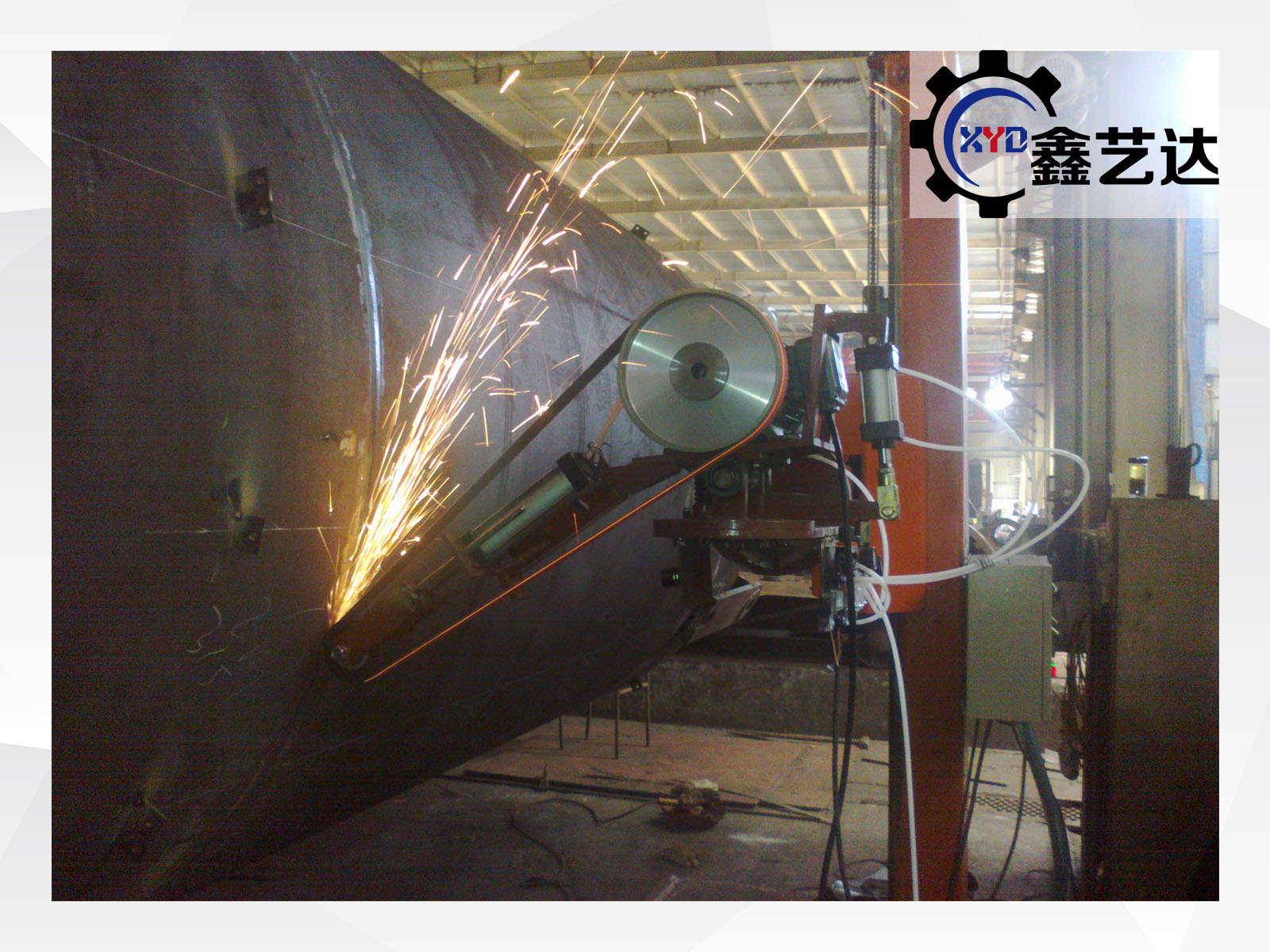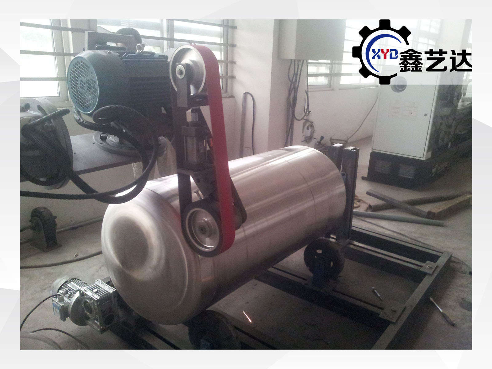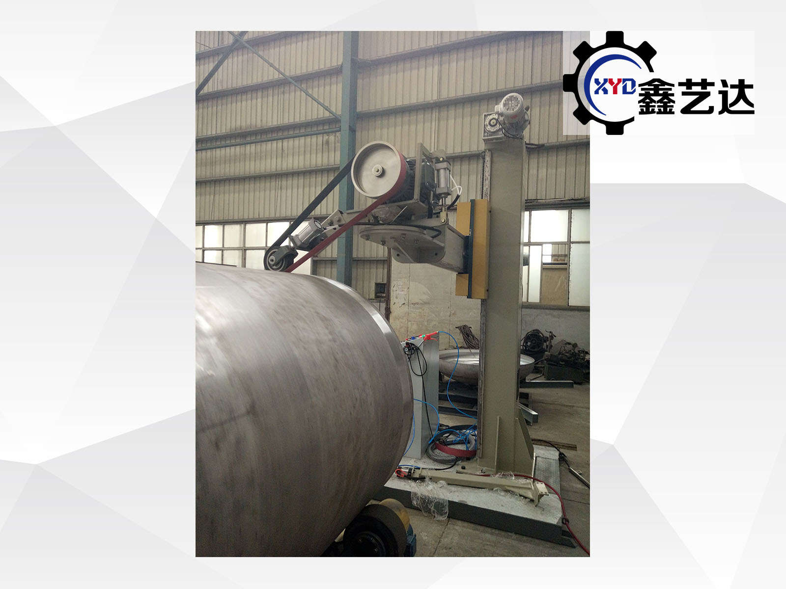 設備由橫梁、立柱、底座、磨頭、罐體滾臺、控制柜等組成。適合罐體φ800mm-3000mm內外拋光,選配罐體滾臺載重范圍:1-20噸。