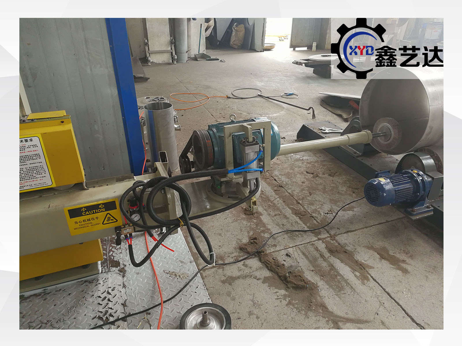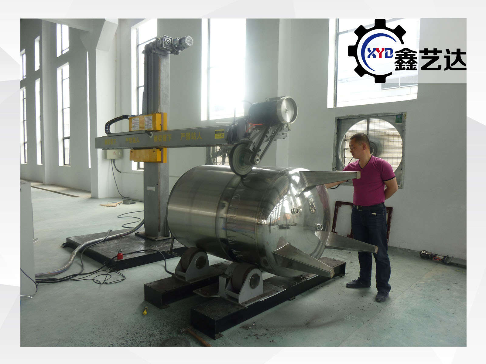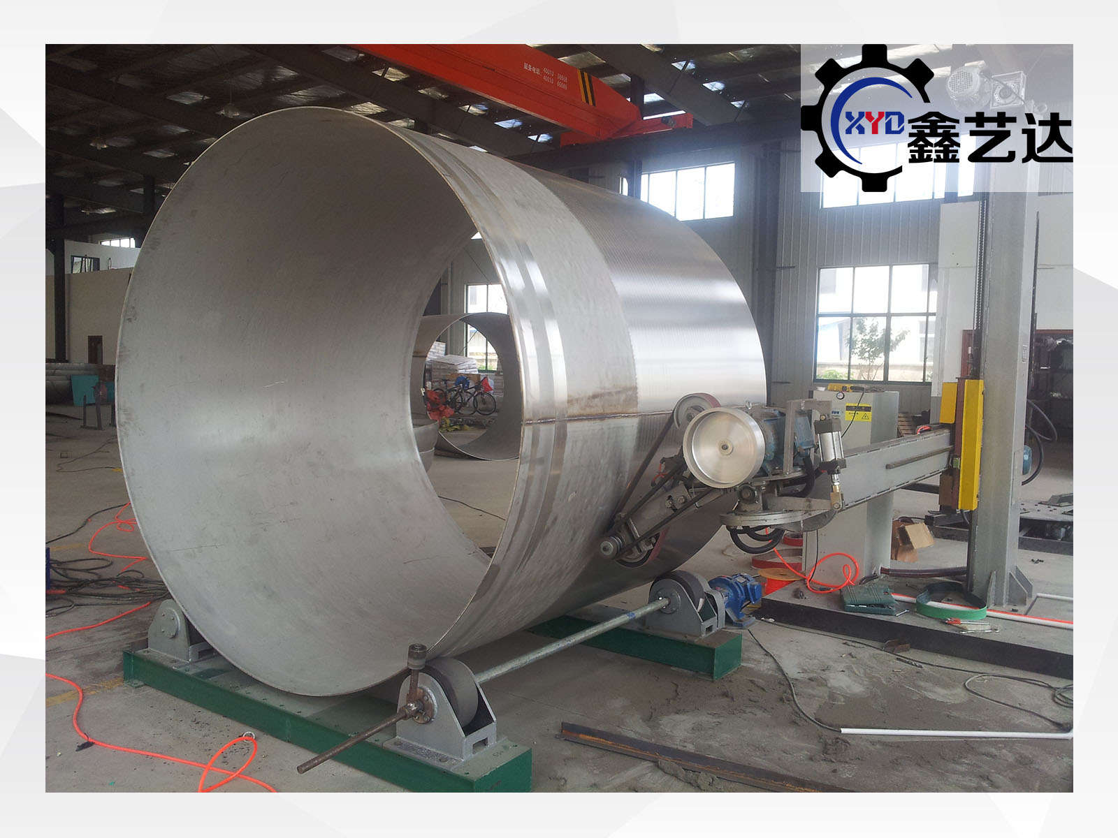 設備由橫梁、立柱、底座、磨頭、罐體滾臺、控制柜等組成。適合罐體φ800mm-3000mm內外拋光,選配罐體滾臺載重范圍:1-20噸。