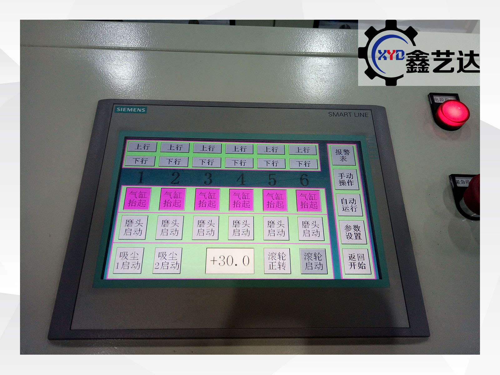 7.輸送線速度為8m/min。拋光機整體安裝全封閉罩殼,罩殼帶透明玻璃窗,便于觀察、維修或更換耗材。設備在每個拋光處安裝有吸塵口及管路,選配吸塵器。