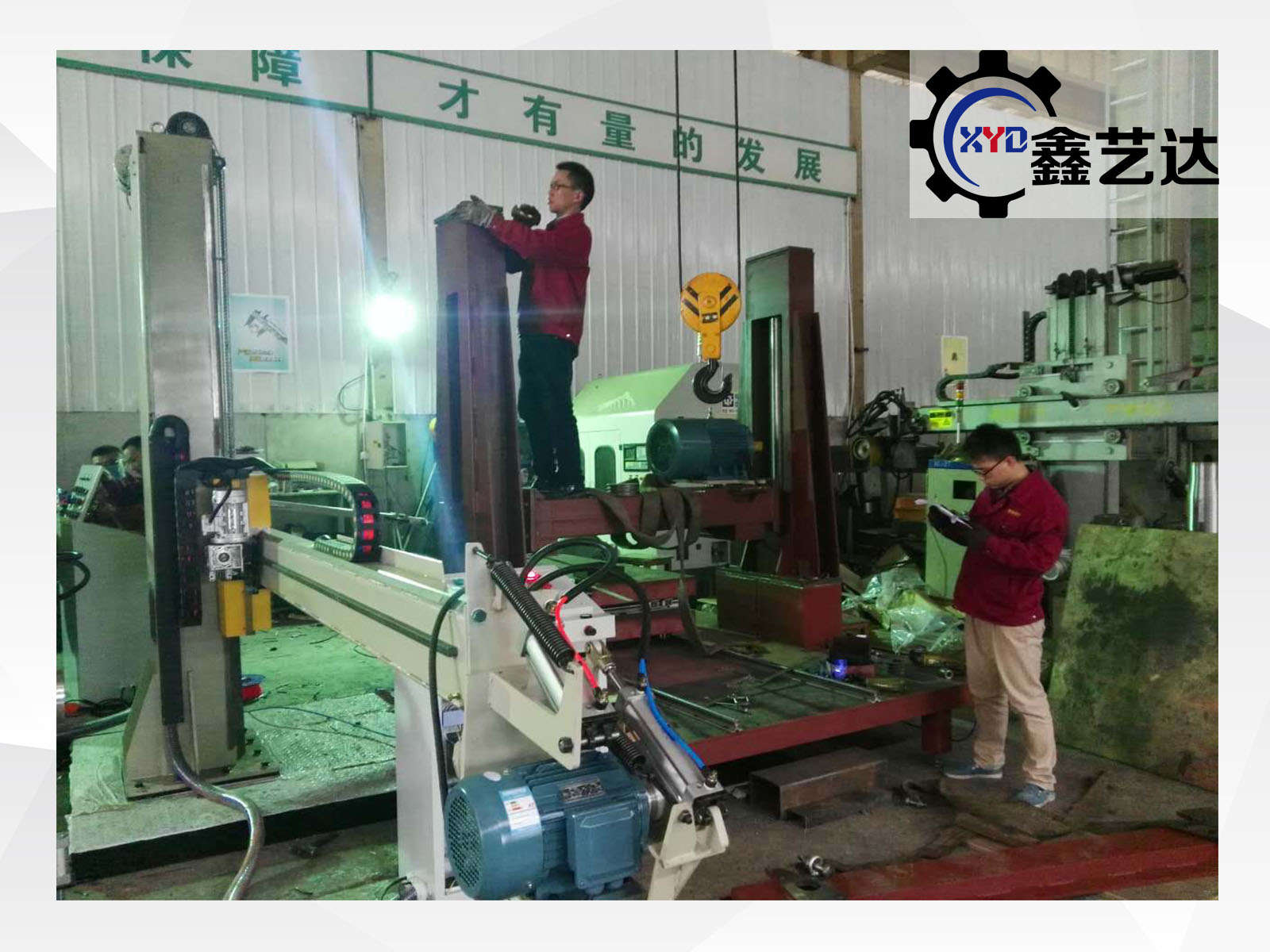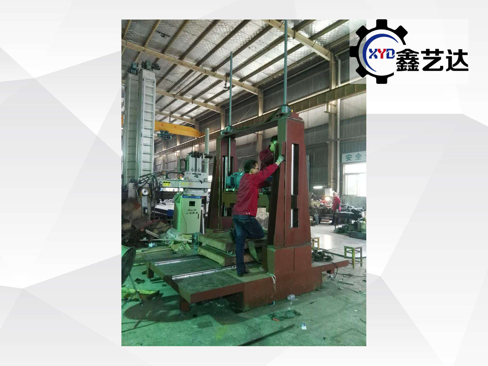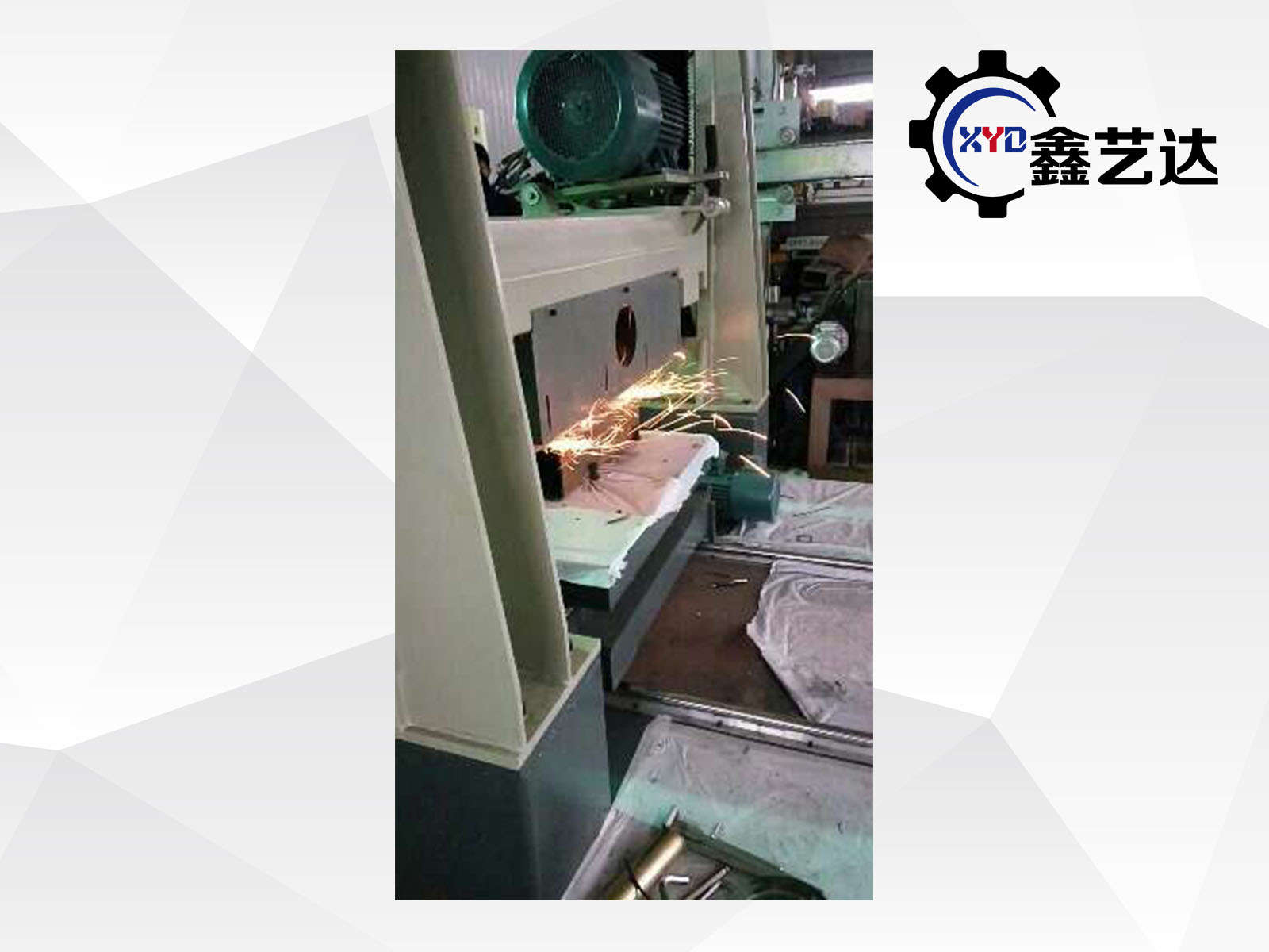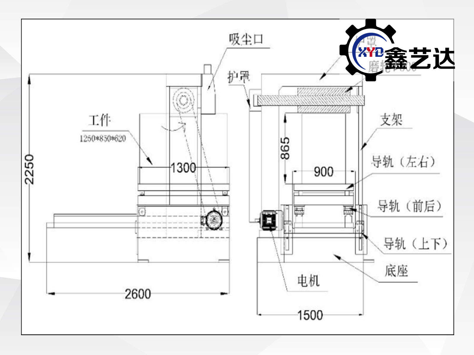 磨輪與工件平臺(tái)間距865mm,滿足工件850mm高度的放置需要,如有不同高度,可以通過自制的墊塊來解決。工件平臺(tái)前后移動(dòng)距離1250mm,滿足工件長度方向的的拋光需要,同時(shí)工件平臺(tái)上安裝有壓板,固定工件。