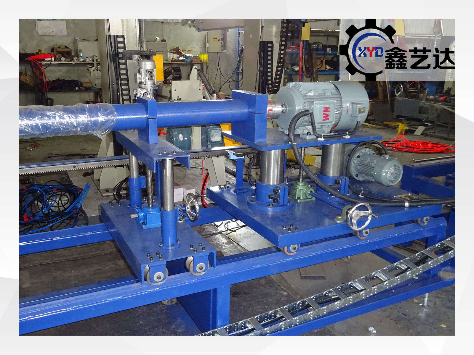 磨頭配主電機國標(biāo)皖南二級7.5kw 變頻,減速機 4kw,支撐架 3 個,磨頭行走最大行程6000mm,支撐長度 8m,掉頭可以進行12m長度的圓管內(nèi)拋光,配圓管卡盤調(diào)整大小并鎖緊,可裝夾磨輪直徑100×50m。