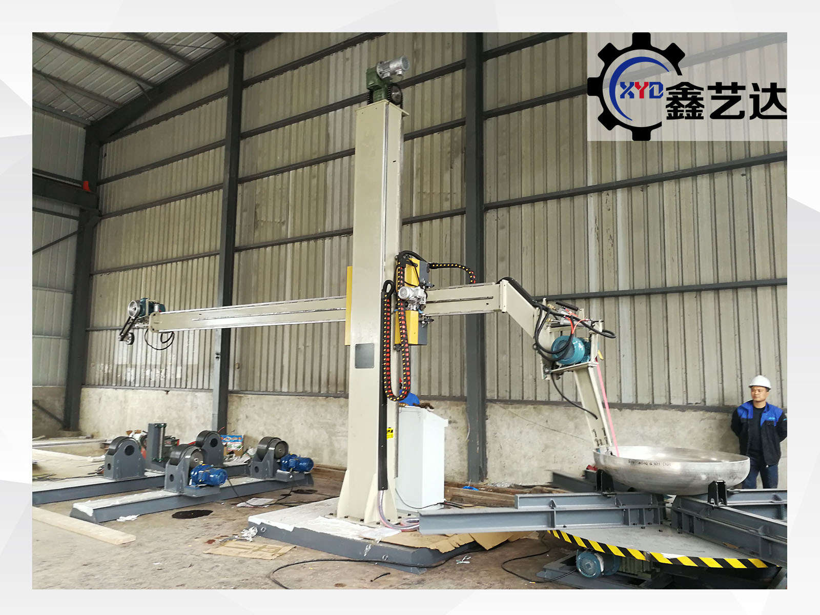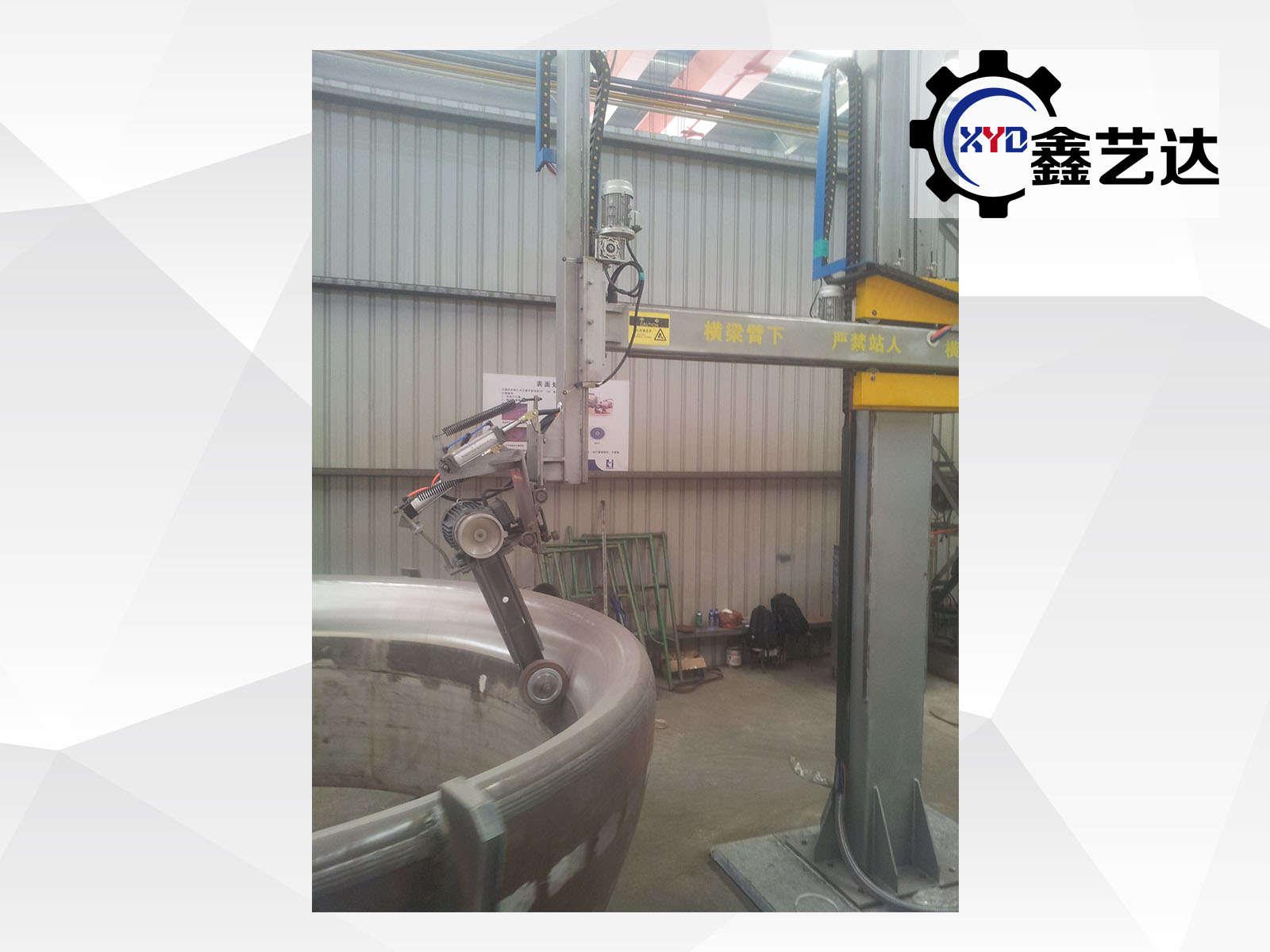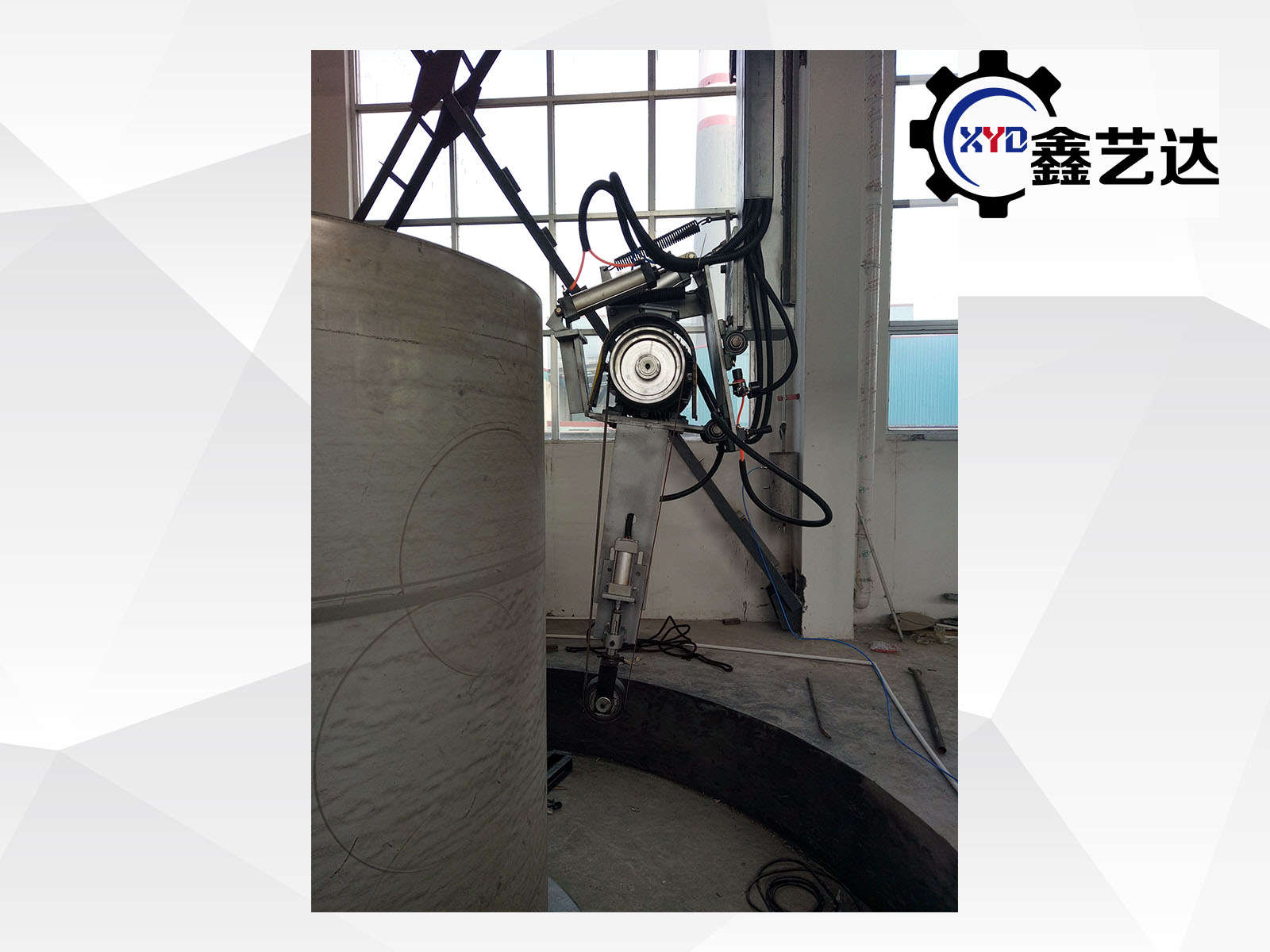設備由橫梁、立柱、底座、罐體磨頭、封頭磨頭、罐體滾臺、封頭滾臺、控制柜等組成。適合罐體φ1000mm-5000mm、封頭φ1000mm-5000mm內外拋光,罐體立式放置高度2500mm,選配工件轉臺載重范圍:1-20噸